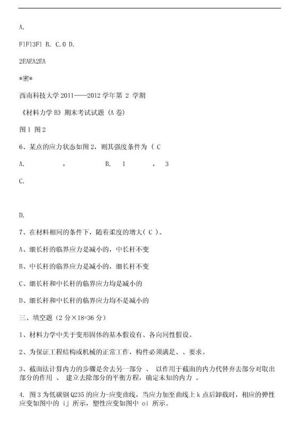 西南科技大学2011——2012学年材料力学考研试题(2)