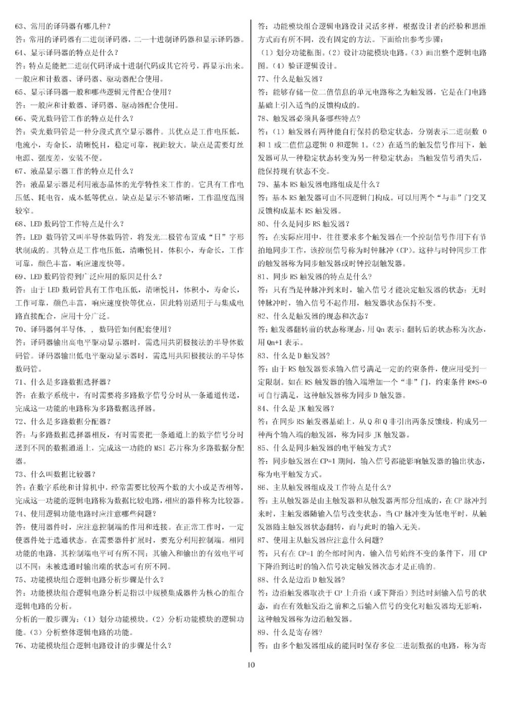第一张正面是微机原理,填空题10分,10个空。问答题1道,3小问,10分。微机原理共20分。 填空题的内容: 写出补码 提供CS、DS、SP、IP等数值,要求写出第一条指令的物理地址,以及程序数据的物理地址范围 其他不记得 问答题是考的8255,第一问要求写出8255的四个接口地址,第二问要求写出控制字,第三问是编写一段汇编程序实现所要求的功能 第一张反面是数字电路,填空题10分,10个空,计算题4道,每题3分,数电一共22分。 填空题都比较基础,其中两道题是选择题,给你四个不同名字的电路,问你哪个是时序逻辑电路,哪个是非时序逻辑电路 4道计算题有3道都是逻辑化简吧,会卡诺图就行了,另外一道是一个三态门逻辑电路,写出最简逻辑表 ...