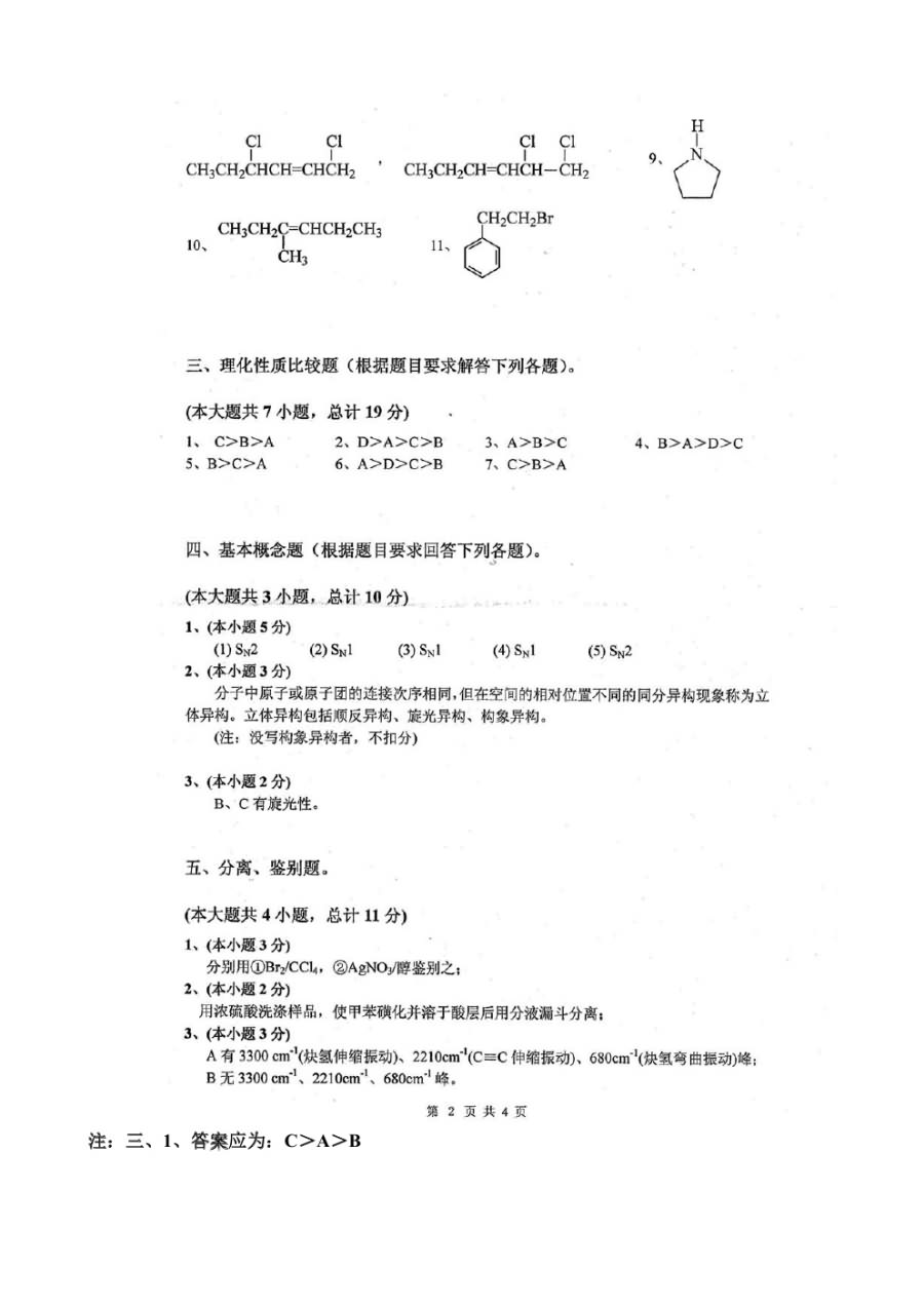陕西科技大学2012学期(上)有机化学期末考试试题及答案扫描件(8)