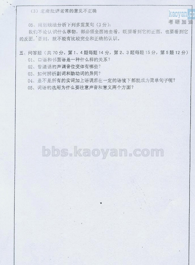 • 2014南开大学文学院考研真题 现代汉语和概论