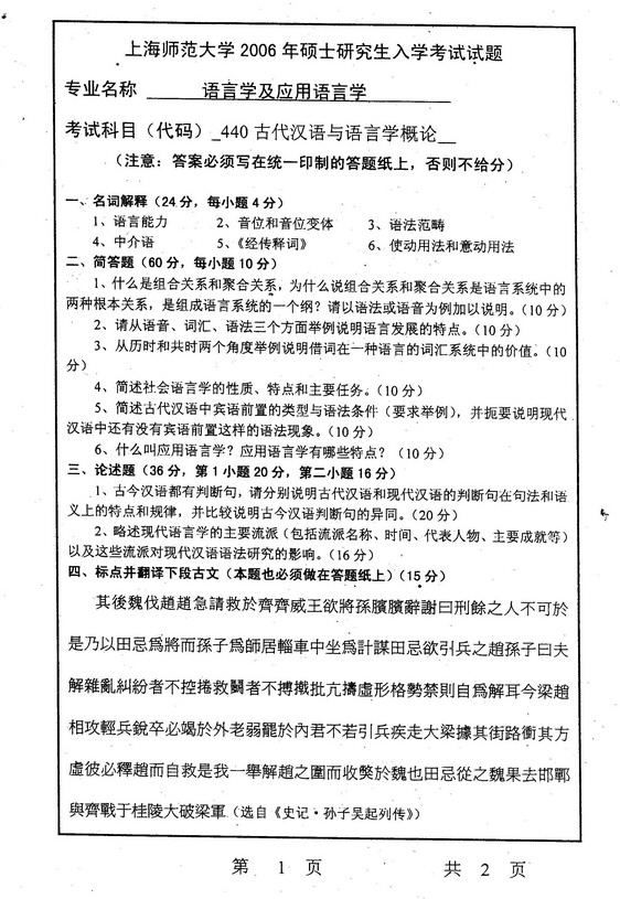 科目名称:汉语史(古代汉语) 流星制作