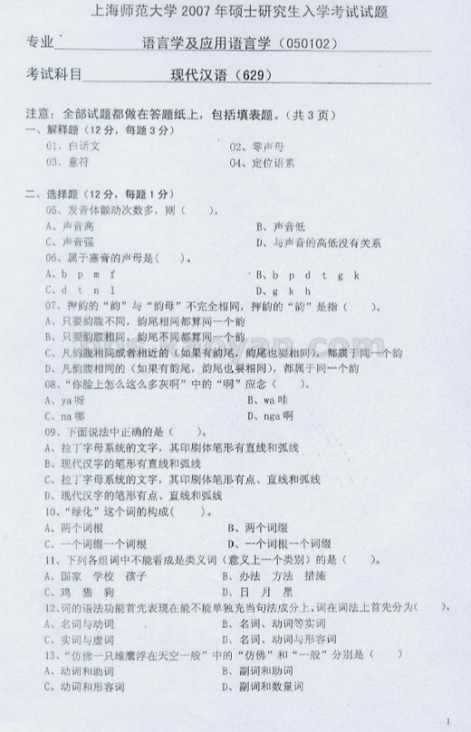 专业课考研资料 本站小编 免费考研网 2015-10-132013年南开文学院848现汉和概论 概论部分: