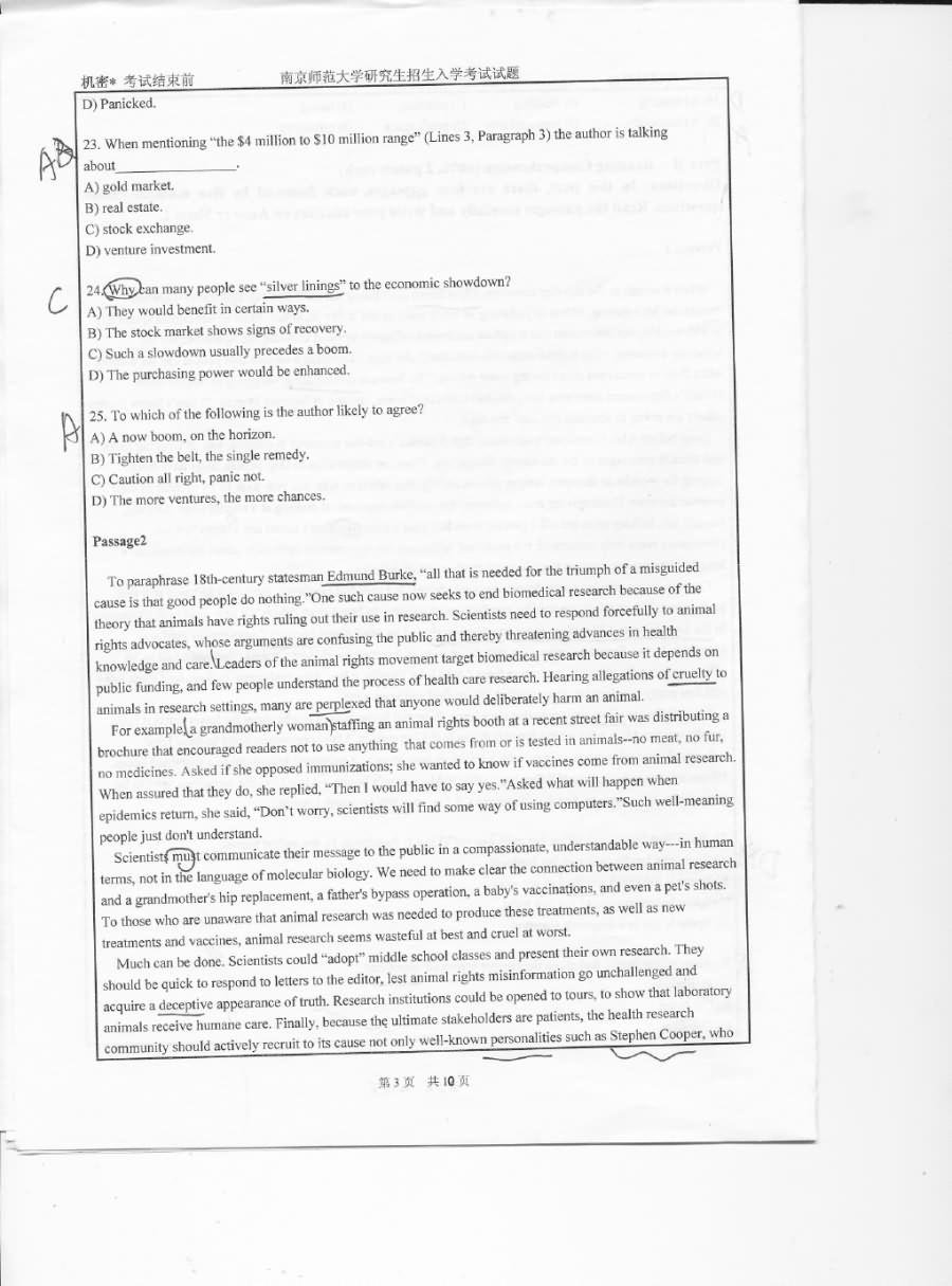 南京师范大学2014年博士英语1001考博真题(3)