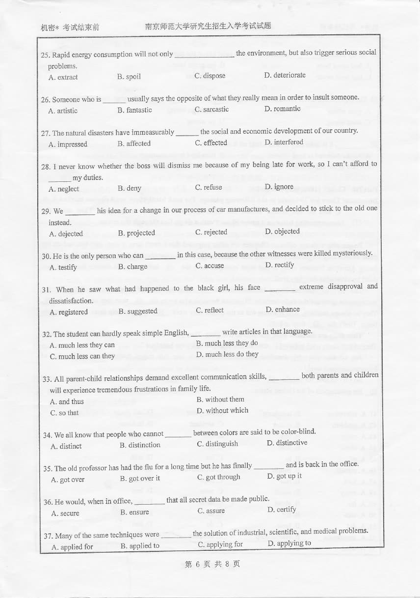 南京师范大学2015年博士英语1001考博真题(6)