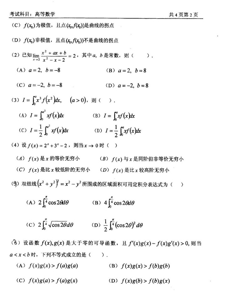 数学资料 本站小编 免费考研网 2015-08-09西南交通大学2004高等数学考研真题