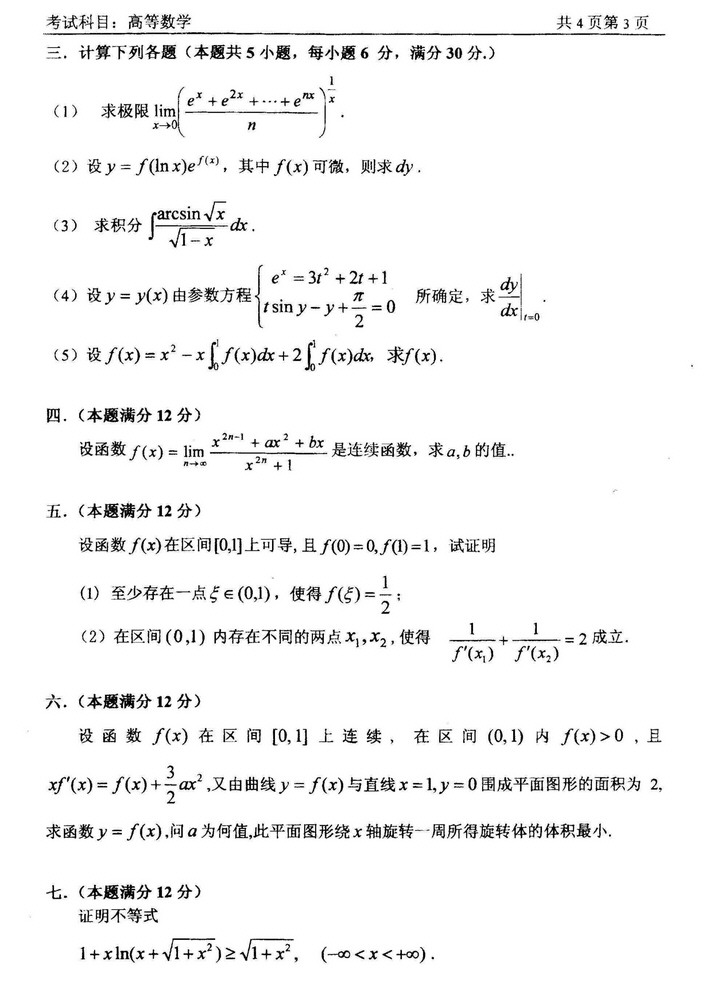 数学资料 本站小编 免费考研网 2015-08-09西南交通大学2004高等数学考研真题