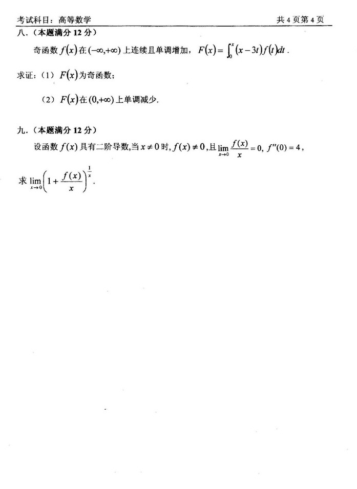 数学资料 本站小编 免费考研网 2015-08-09西南交通大学2004高等数学考研真题