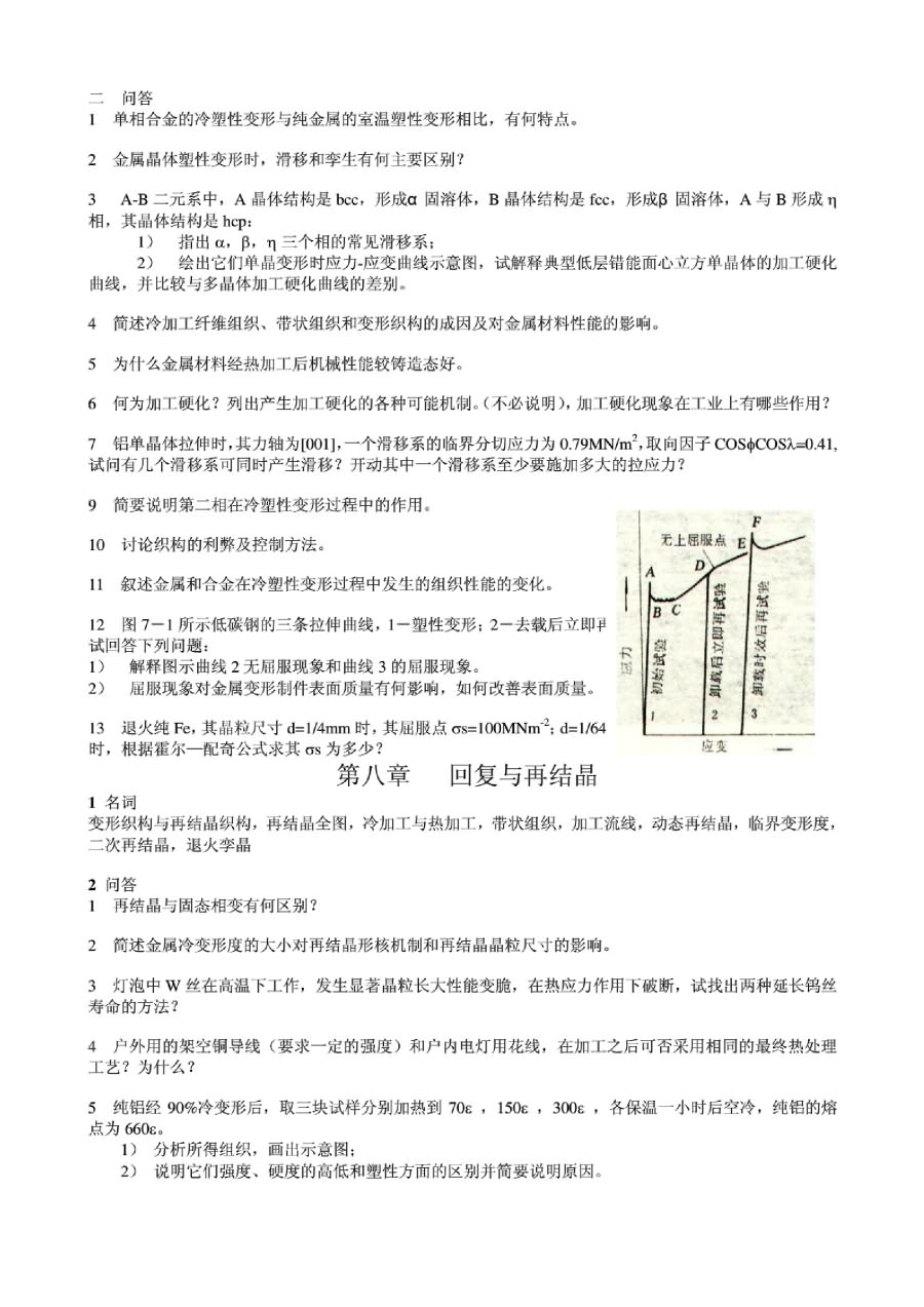 2011年试题 一、填空(每空1分,12分) 1、在BCC和FCC晶格中,单位晶胞内的原子数分别为2和4,其致密度分别为0.68和0.74。 2、金属的结晶过程是形核与长大的过程。 3、冷变形金属在加热时组织与性能的变化,随加热温度不同,大致分为回复、再结晶、晶粒长大三个阶段。 4、1Cr18Ni9Ti钢中Ti的作用是防止晶间腐蚀,而20C ...