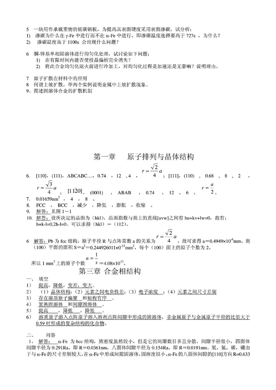 2011年试题 一、填空(每空1分,12分) 1、在BCC和FCC晶格中,单位晶胞内的原子数分别为2和4,其致密度分别为0.68和0.74。 2、金属的结晶过程是形核与长大的过程。 3、冷变形金属在加热时组织与性能的变化,随加热温度不同,大致分为回复、再结晶、晶粒长大三个阶段。 4、1Cr18Ni9Ti钢中Ti的作用是防止晶间腐蚀,而20C ...