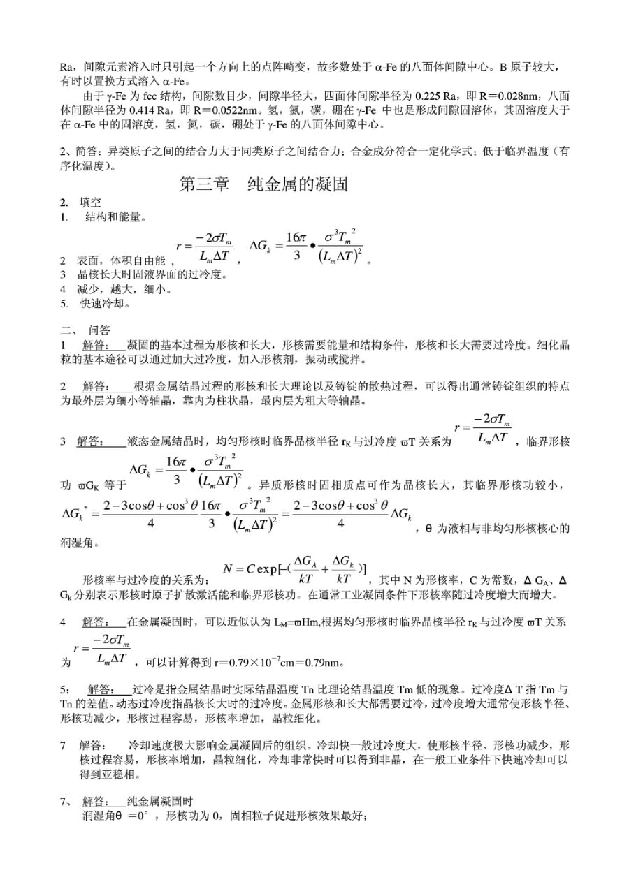 2011年试题 一、填空(每空1分,12分) 1、在BCC和FCC晶格中,单位晶胞内的原子数分别为2和4,其致密度分别为0.68和0.74。 2、金属的结晶过程是形核与长大的过程。 3、冷变形金属在加热时组织与性能的变化,随加热温度不同,大致分为回复、再结晶、晶粒长大三个阶段。 4、1Cr18Ni9Ti钢中Ti的作用是防止晶间腐蚀,而20C ...