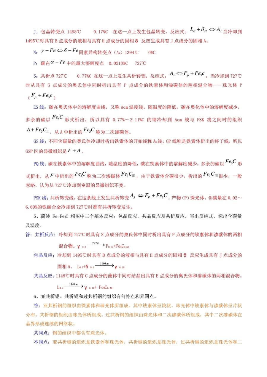 1.钢: 在铁碳二元系中,把含碳量小于2.11%的合金称为钢。 2.铸铁: 在铁碳二元系中,把含碳量大于2.11%的合金称为铸铁。 3.匀晶转变: 金属结晶时从液相结晶出单相固溶体的过程。 4.共晶转变: 指一定成分的液态合金,在一定温度下,同时结晶出两种不同的固相的转变。L+ 5.包晶转变: 在一定温 ...