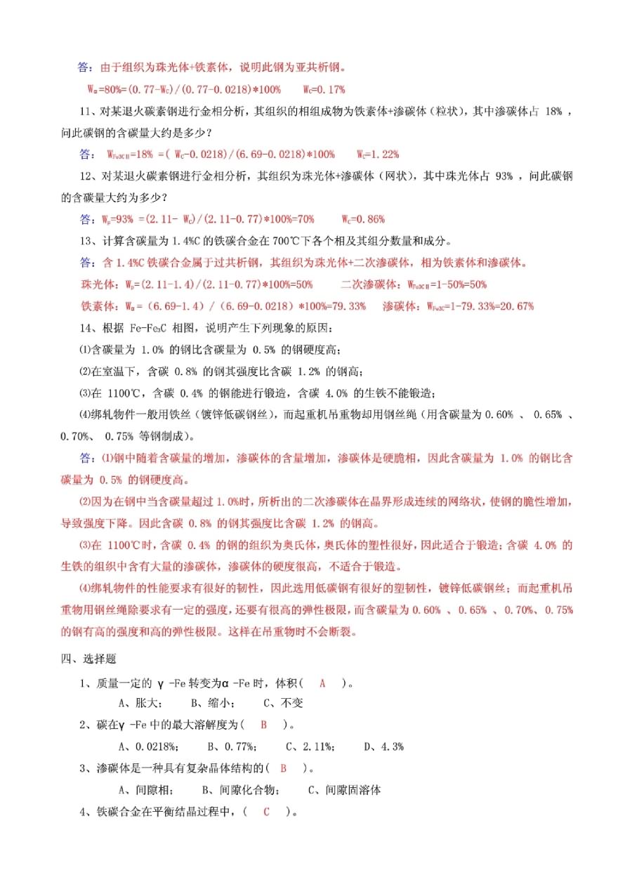 2011年试题 一、填空(每空1分,12分) 1、在BCC和FCC晶格中,单位晶胞内的原子数分别为2和4,其致密度分别为0.68和0.74。 2、金属的结晶过程是形核与长大的过程。 3、冷变形金属在加热时组织与性能的变化,随加热温度不同,大致分为回复、再结晶、晶粒长大三个阶段。 4、1Cr18Ni9Ti钢中Ti的作用是防止晶间腐蚀,而20C ...