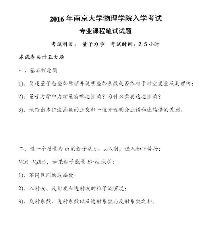 专业课考研资料 本站小编 免费考研网 2015-07-01中国科学技术大学2003-2012年考研量子力学试卷带详细答案