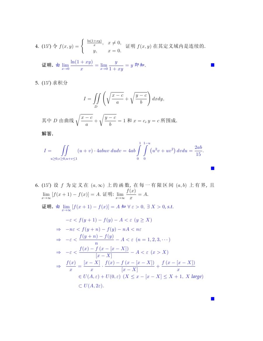 专业课考研资料 本站小编 网络资源 2015-07-142005年南开大学数学分析试题答案