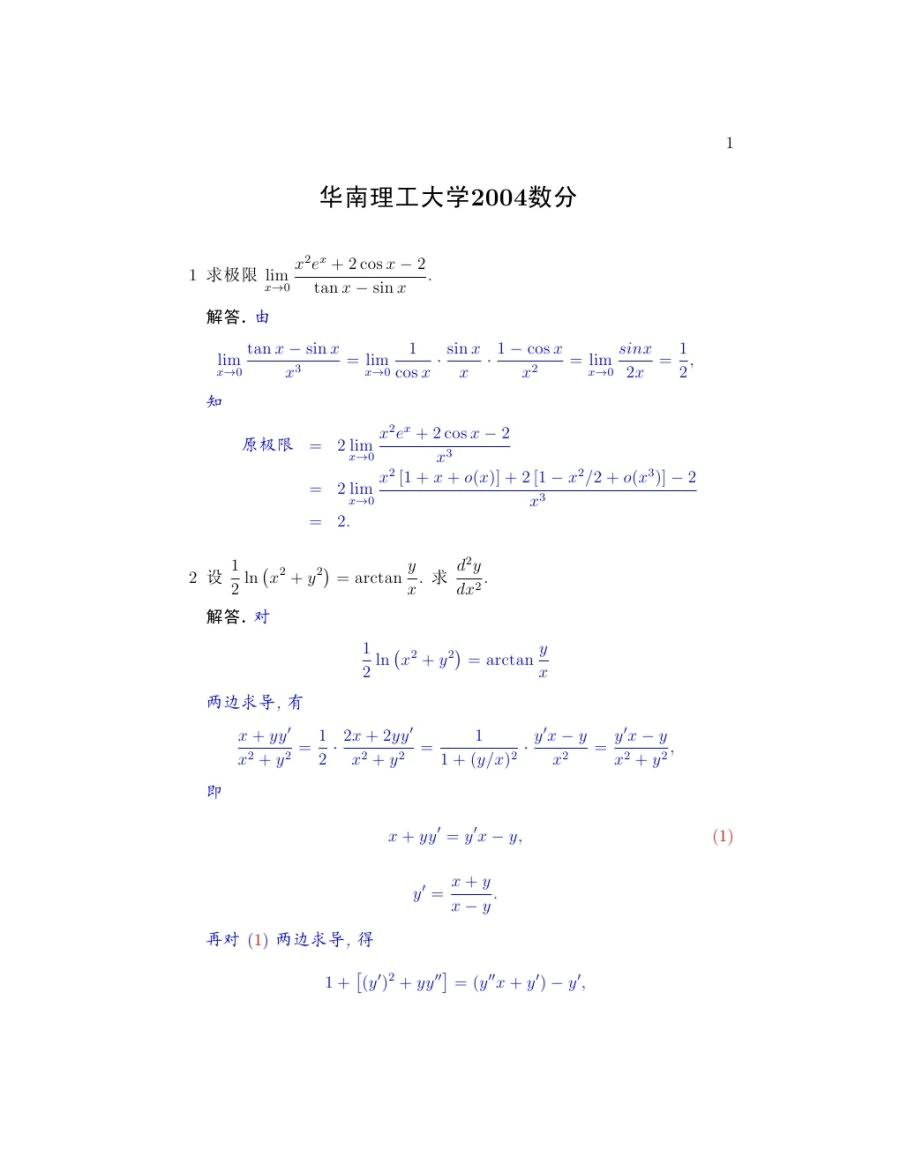 专业课考研资料 本站小编 免费考研网 2016-01-04华南理工大学2010-2009数学分析考研真题解答