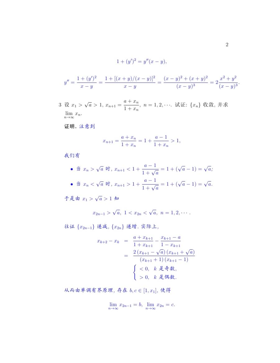 专业课考研资料 本站小编 免费考研网 2015-11-10南京大学2008年和2009年数学分析考研试题及解答