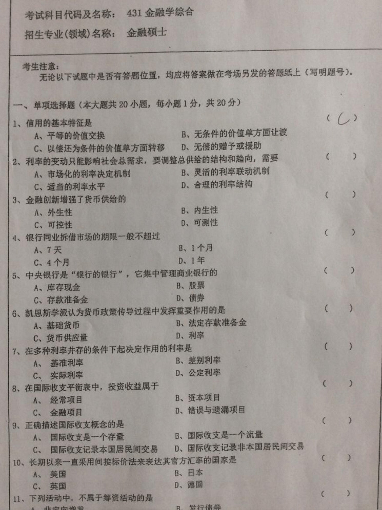 专业课考研资料 本站小编 免费考研网 2016-01-012016年山东大学431金融学综合真题回忆版