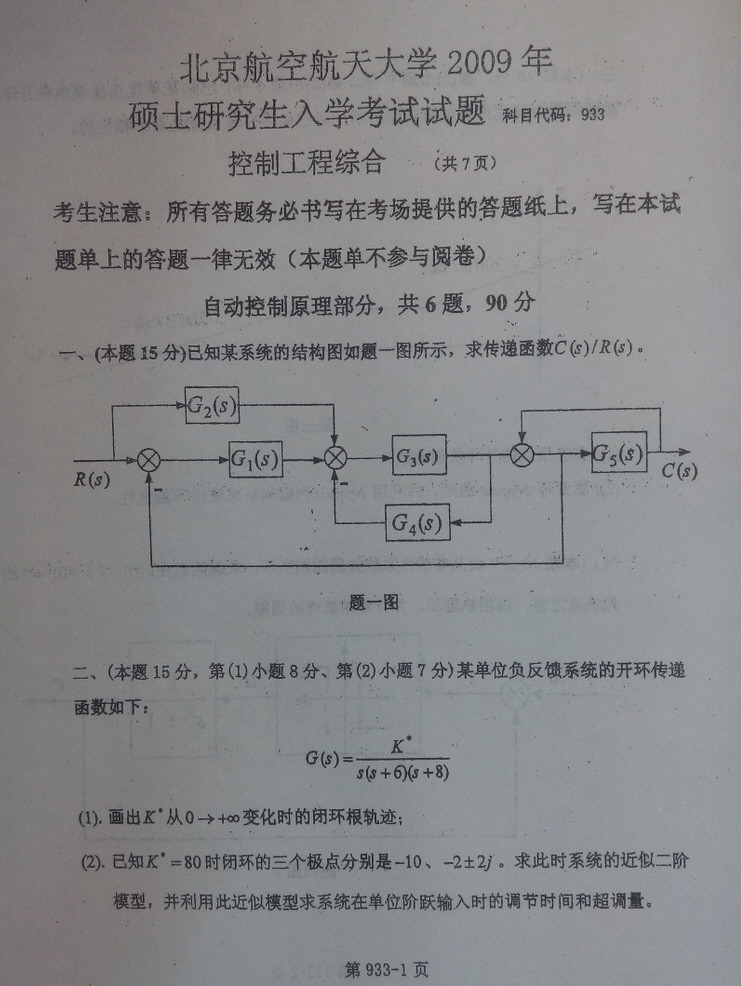 2014年北京理工大学自动控制原理回忆版