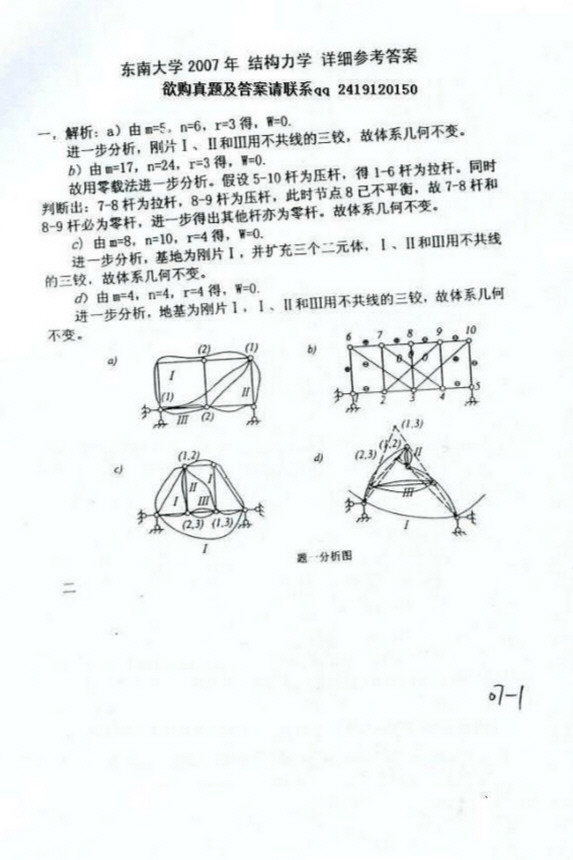 东南大学2007结构力学考研真题详细答案