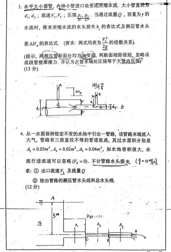 天津大学2001年水力学431考研真题(3)