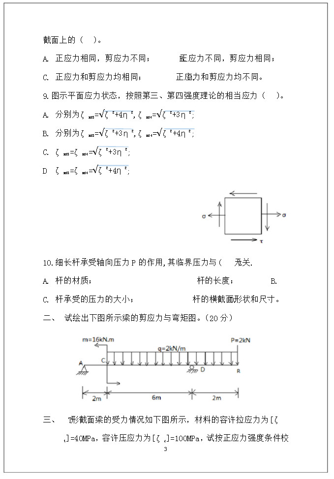 专业课考研资料 本站小编 免费考研网 2016-01-032010同济大学材料力学回忆版考研试题