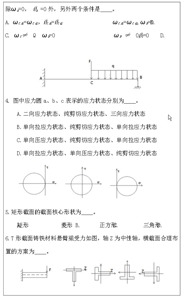 专业课考研资料 本站小编 免费考研网 2016-01-032010同济大学材料力学回忆版考研试题
