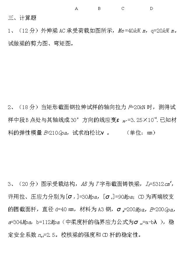 专业课考研资料 本站小编 免费考研网 2016-01-09兰州交通大学2008材料力学806考研真题