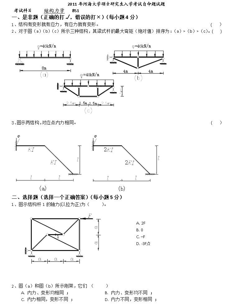 专业课考研资料 本站小编 免费考研网 2016-01-052012年天津大学结构力学研究生考研试题—答案