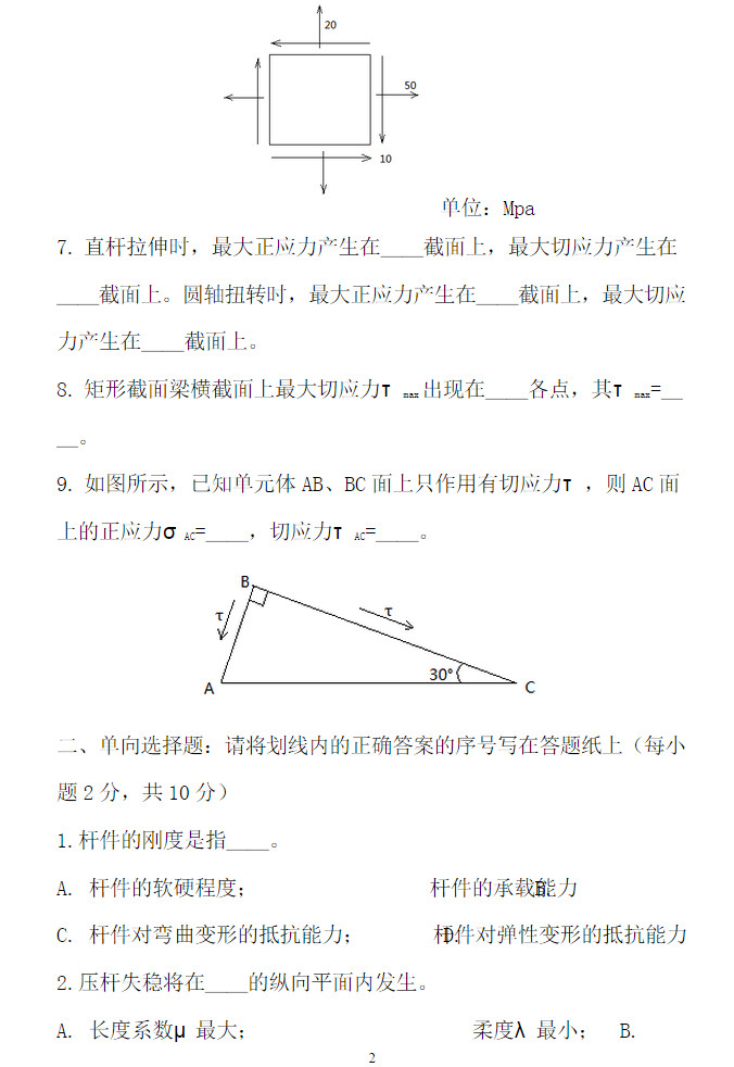 专业课考研资料 本站小编 免费考研网 2016-01-032010同济大学材料力学回忆版考研试题