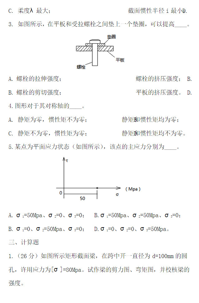 专业课考研资料 本站小编 免费考研网 2016-01-032010同济大学材料力学回忆版考研试题