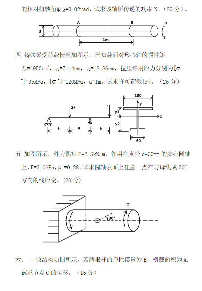 专业课考研资料 本站小编 免费考研网 2016-01-032010同济大学材料力学回忆版考研试题
