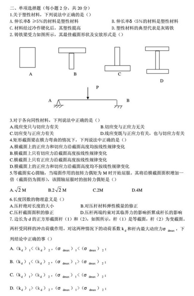 专业课考研资料 本站小编 免费考研网 2016-01-032010同济大学材料力学回忆版考研试题