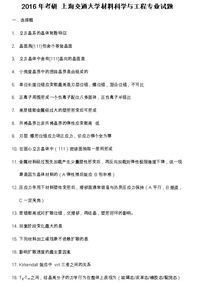 一、名词解释(3 10) 1、柏氏矢量 2、伪共晶 3、熔晶转变 4、弹性模量 5、位错塞积 6、解理断裂 7、再结晶 8、相率 9、碳当量 10、有效形核温度 二、填空题(220) 1、F3C布氏硬度为 ;铁素体布氏硬度为 2、三种内应力分别是______、_______、_________。 3、超塑体按照物理冶 ...专业课考研资料 本站小编 免费考研网 2016-01-092014同济大学考研材料力学考研真题回忆