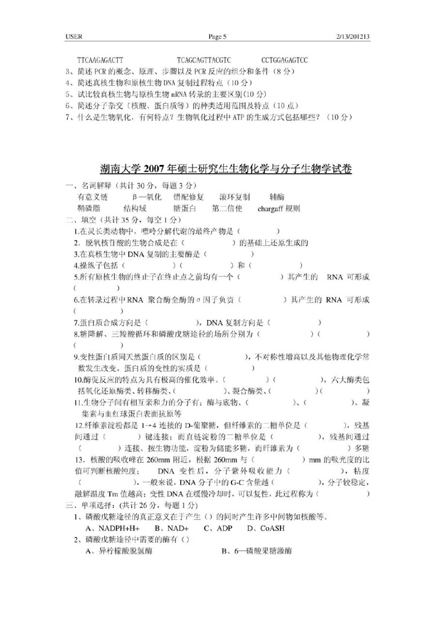湖南大学2005-2009生物化学考研真题(5)