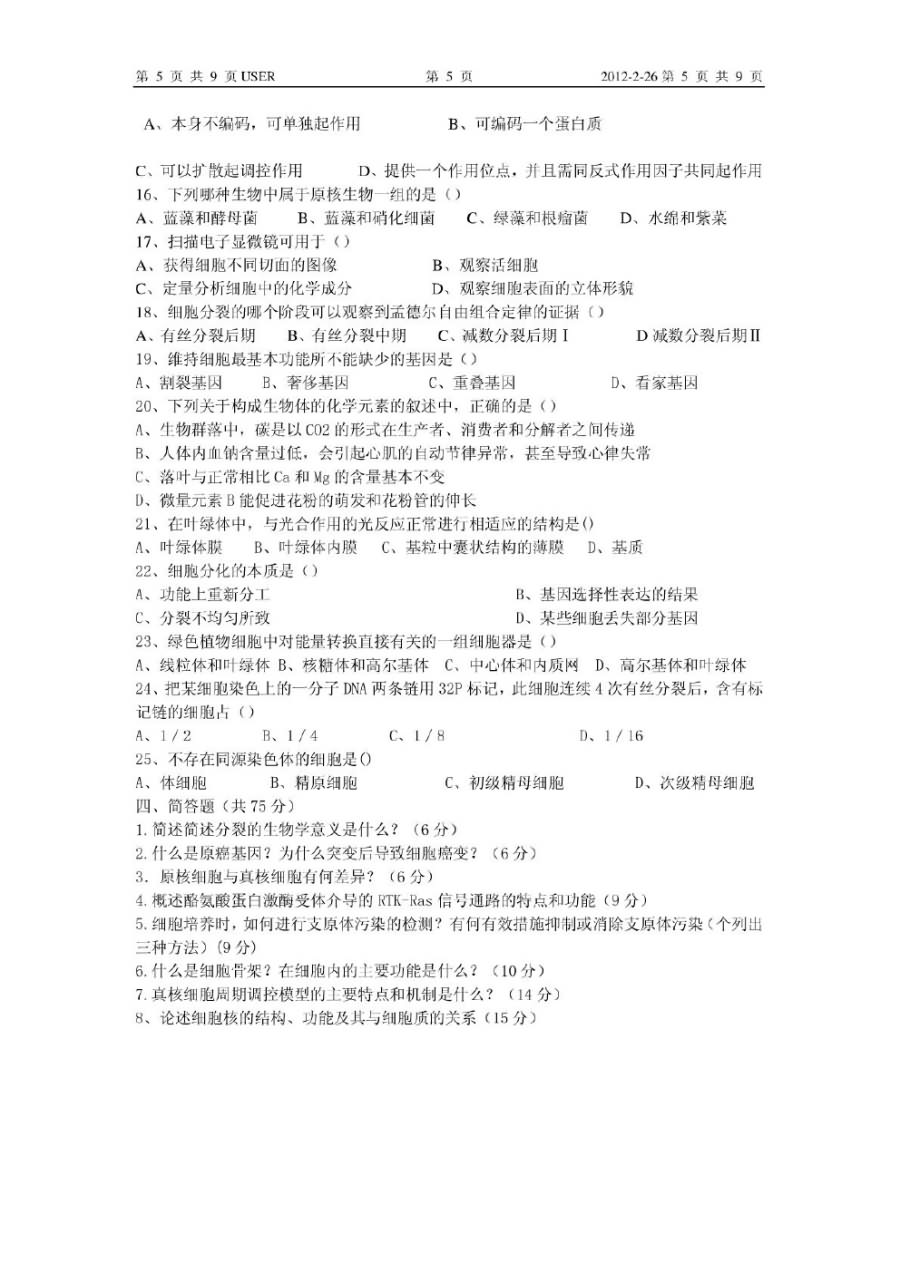 生物医学笔记 本站小编 免费考研网 2015-10-212015年苏州大学细胞生物学考研真题(845)
