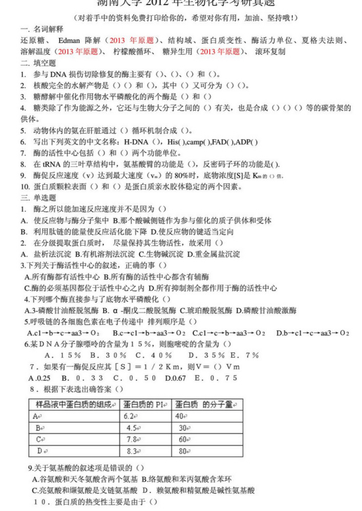 专业课考研资料 本站小编 免费考研网 2016-01-032012年 628生物化学大题 满分150
