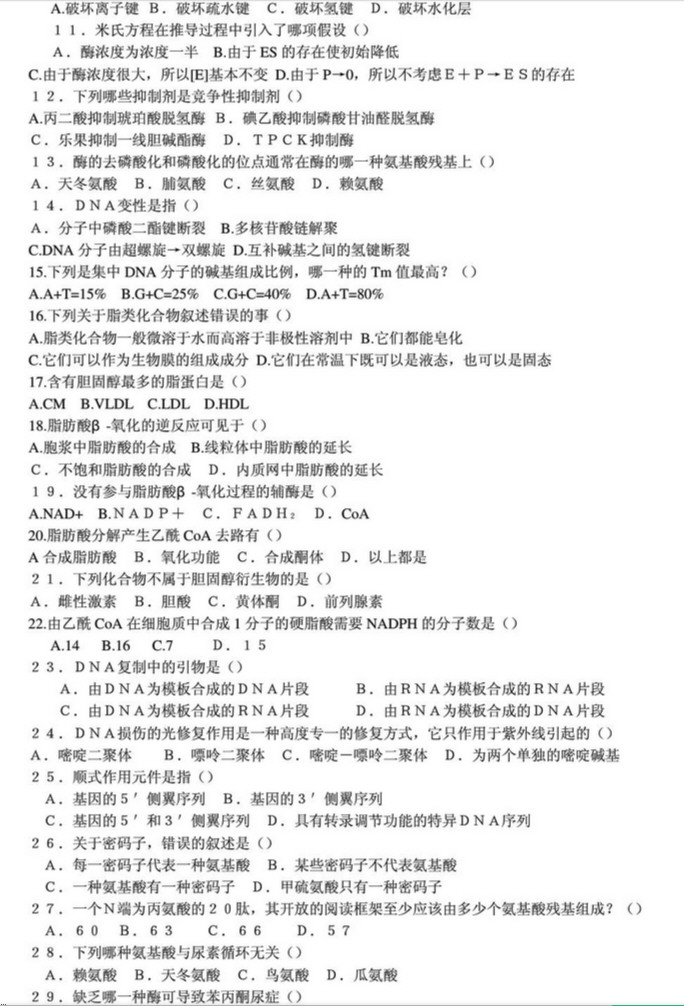 历年各高校生物化学考研真题