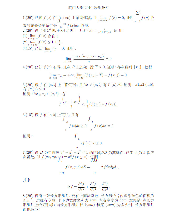专业课考研资料 本站小编 免费考研网 2016-01-01厦门大学2016数学分析考研真题