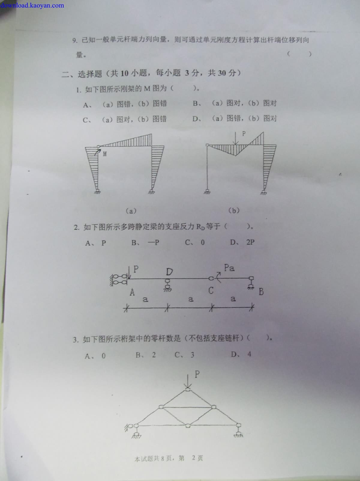 专业课考研资料 本站小编 免费考研网 2016-01-09河海大学2011年硕士研究生结构力学考研真题