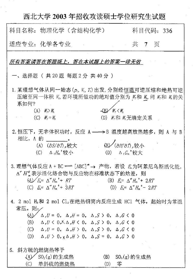 北京化工大学2013-2015年860物理化学考研真题 ...专业课考研资料 本站小编 免费考研网 2015-11-23西北大学物理化学考研辅导课件
