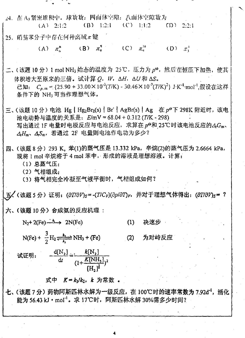 专业课考研资料 本站小编 免费考研网 2015-12-06南京工业大学2015年硕士研究生物理化学复试试题