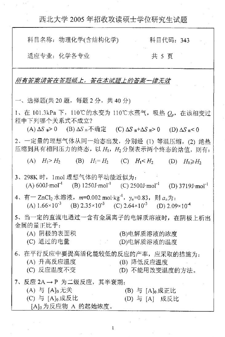 北京化工大学2013-2015年860物理化学考研真题 ...专业课考研资料 本站小编 免费考研网 2015-11-23西北大学物理化学考研辅导课件