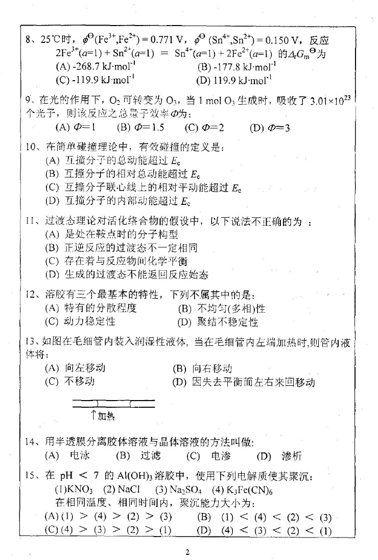专业课考研资料 本站小编 免费考研网 2015-12-06南京工业大学2015年硕士研究生物理化学复试试题