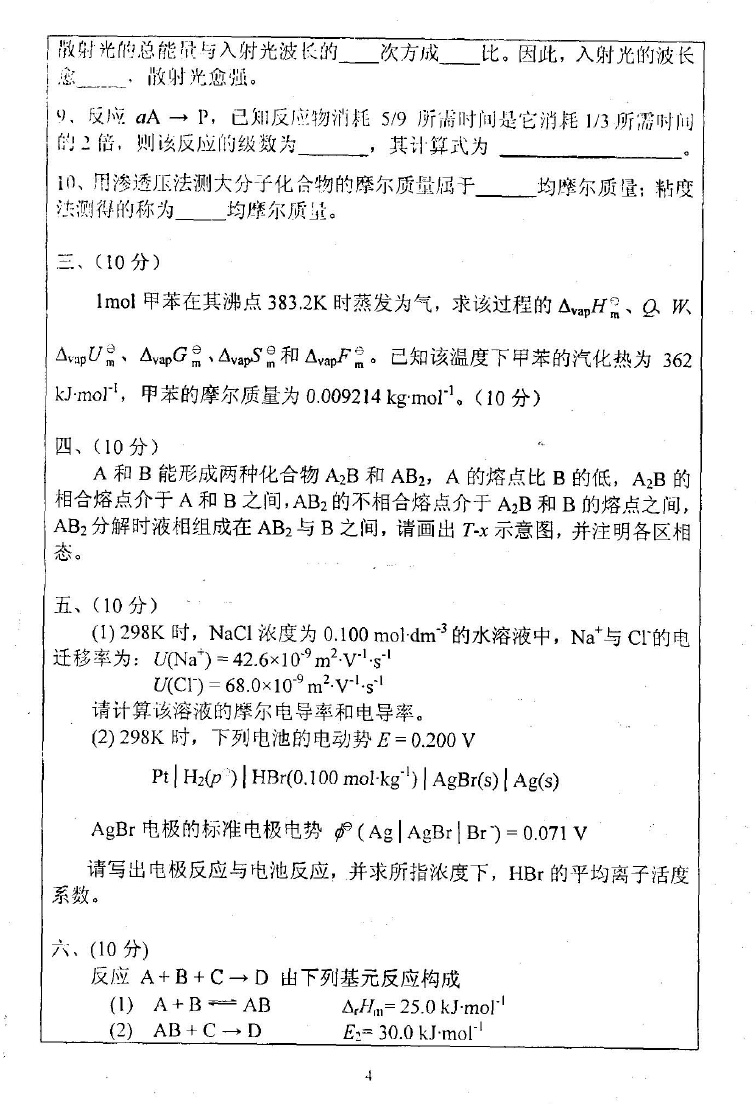 西北大学物理化学2001-2005年考研真题(25)