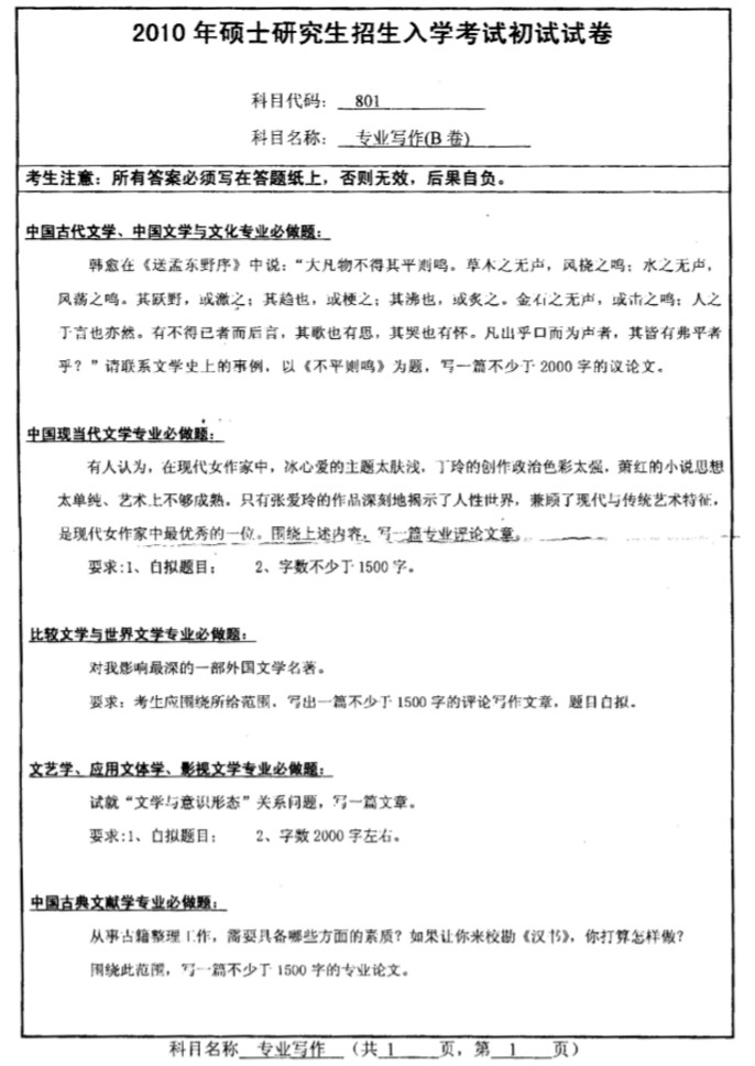 考研报考信息 本站小编 免费考研网 2015-12-01中国古代文学史部分(共75分)