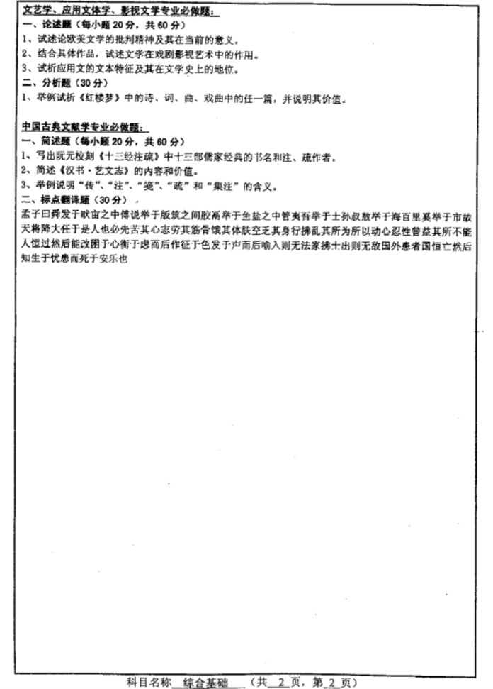 • 2015年浙江大学古典文献学考研真题