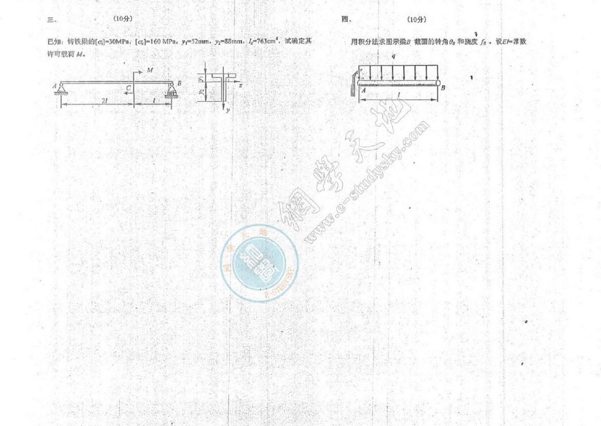 专业课考研资料 本站小编 免费考研网 2016-01-032010同济大学材料力学回忆版考研试题