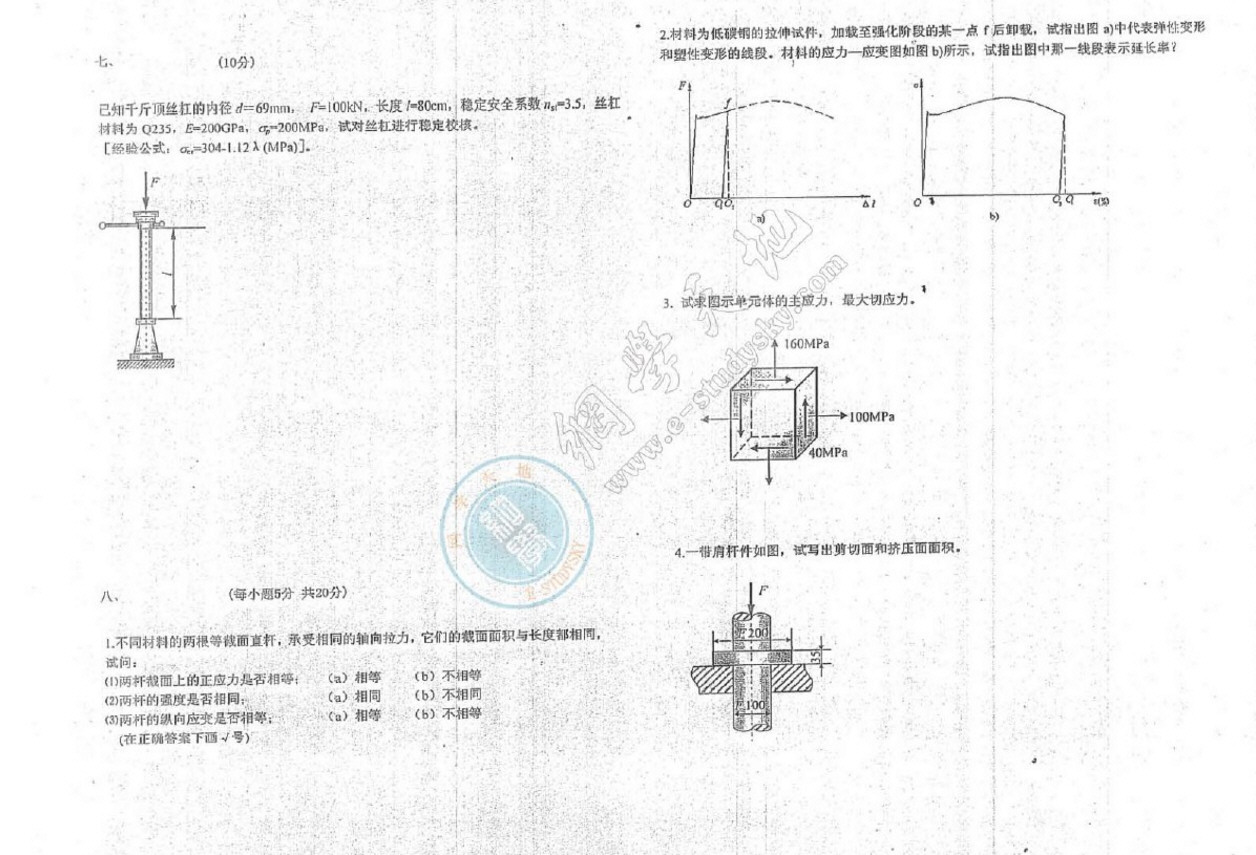 专业课考研资料 本站小编 免费考研网 2016-01-032010同济大学材料力学回忆版考研试题