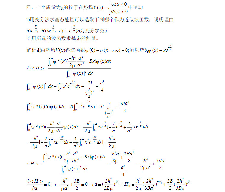 专业课考研资料 本站小编 免费考研网 2016-01-03山东大学2012量子力学考研试题