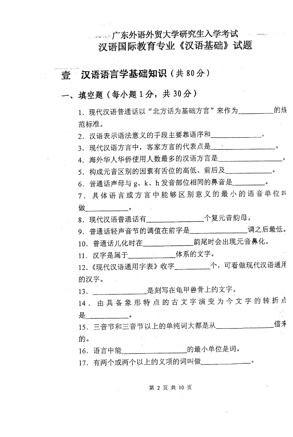 广东外语外贸大学2010汉语基础考研真题(2)